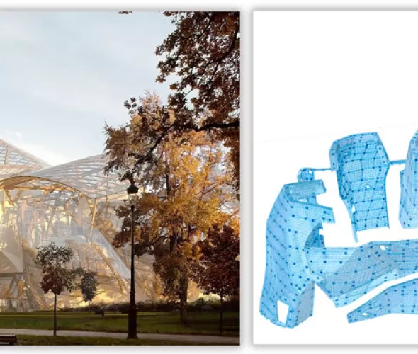 In 2012 werd Pouma beloond met een Tekla Global BIM Award voor haar aandeel in het project ‘The Icebergs’ in Parijs. Het museum voor moderne kunst van de Louis Vuitton Foundation wordt gekenmerkt door een serie complexe, uitstekende vormen die tezamen de illusie van ijsbergen wekken, waarbij Pouma Engineering de engineering van meer dan 2000 geometrisch verschillende aluminium panelen heeft verzorgd. Mans: "Het project had een ongekende geometrische complexiteit en variëteit. Meerdere teams moesten tegelijkertijd op identieke wijze kunnen samenwerken aan dit project om de fabricage technisch en financieel haalbaar te maken. We hebben intelligente tools ontwikkeld die bruikbaar en begrijpelijk moesten zijn voor meerdere partijen. In Tekla hebben we een quasi automatische lay-out ontworpen voor de tekeningen. Dit houdt in dat we met 2 muisklikken automatisch een tekening konden genereren van een paneel, inclusief alle verschillende onderdelen, gegevens en meetpunten van het element. Dat laatste was erg belangrijk voor de afstemming van de werkvoorbereiding en fabricage van de panelen."