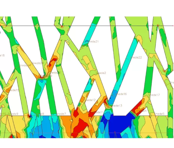 Met het gebruik van de takkenstructuur moest er ook rekening gehouden worden met de krachten die op elk van de takken wordt uitgeoefend. Om deze krachten te berekenen werden vanuit Tekla Structures DWG-exports gemaakt die vervolgens in de rekensoftware SCIA Engineer werden geïmporteerd. In de rekensoftware kon de engineer direct starten met het invoeren van onder andere de belastingen en combinaties. “Door te werken met geavanceerde software zoals SCIA Engineer en Tekla Structures zijn we in staat om heldere, constructieve gegevens veel verder uit te werken. Op deze manier bereiken we een hoge mate van efficiëntie en maximale constructieve veiligheid”, aldus Hulsbergen.
