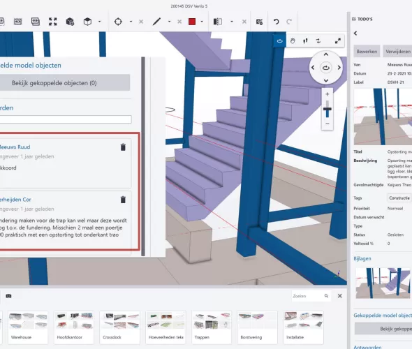 Met de komst van Trimble Connect op kantoor en de bouwplaats is het mailverkeer bij Unibouw aanzienlijk verminderd. “In plaats van een e-mail te sturen voor een taak, maken wij een ToDo aan in Trimble Connect. Via ToDo’s kan je taken aanmaken voor projectleden, voor bijvoorbeeld het oplossen van een fout of wijzigingen binnen een model”, legt Meeuws uit. “Deze wordt tekstueel omschreven en visueel gemaakt door afbeeldingen toe te voegen van het model, of zelfs IFC’s mee te sturen als bijlage.” Naast dat het veel onnodig mailverkeer bespaart, hoeven hierdoor ook aanzienlijk minder PDF’s gecontroleerd te worden. Meeuws: “ToDo’s zijn fijn voor de onderaannemer die weet wat hij moet tekenen én fijn voor jezelf, want je bespaart tijd omdat je een model krijgt zoals hij behoort te zijn.”